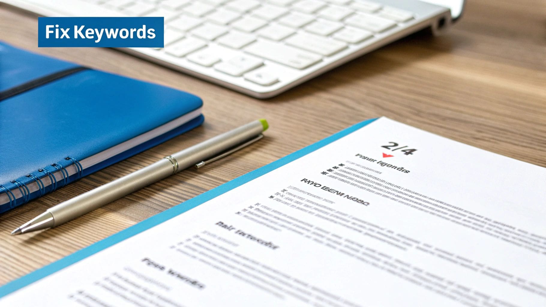 The feedback usually boils down to two critical areas: keywords and formatting. Getting these right is non-negotiable. With nearly 98% of Fortune 500 companies using an ATS, a staggering 75% of resumes get filtered out before a recruiter even lays eyes on them. This is why optimizing your resume based on a detailed report isn't just a good idea; it's essential.