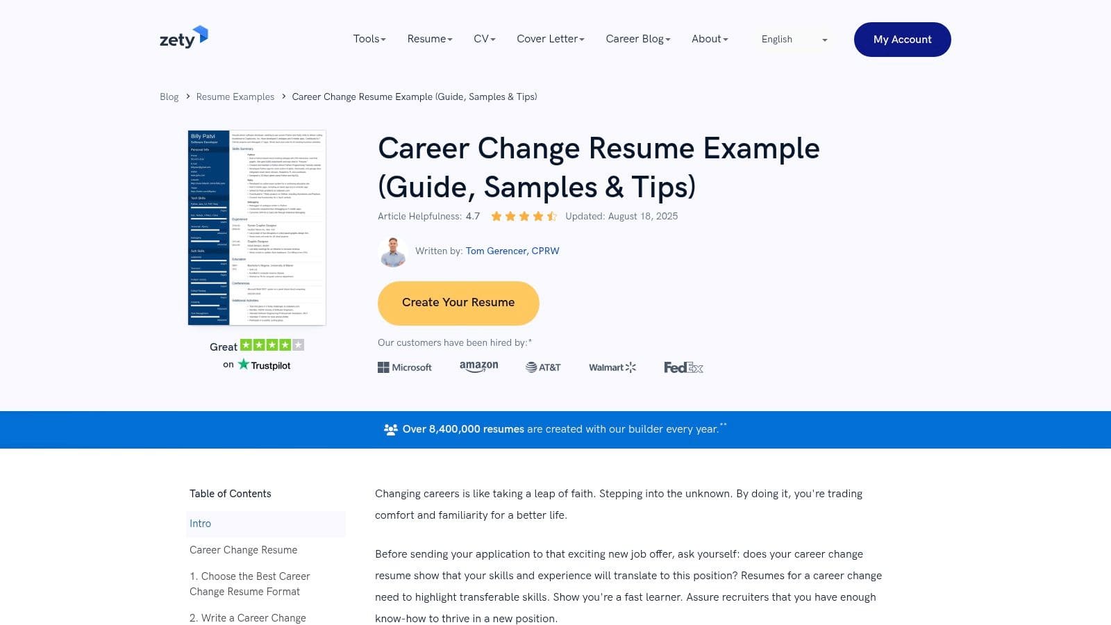 - Website: Zety Career Change Resume Guide