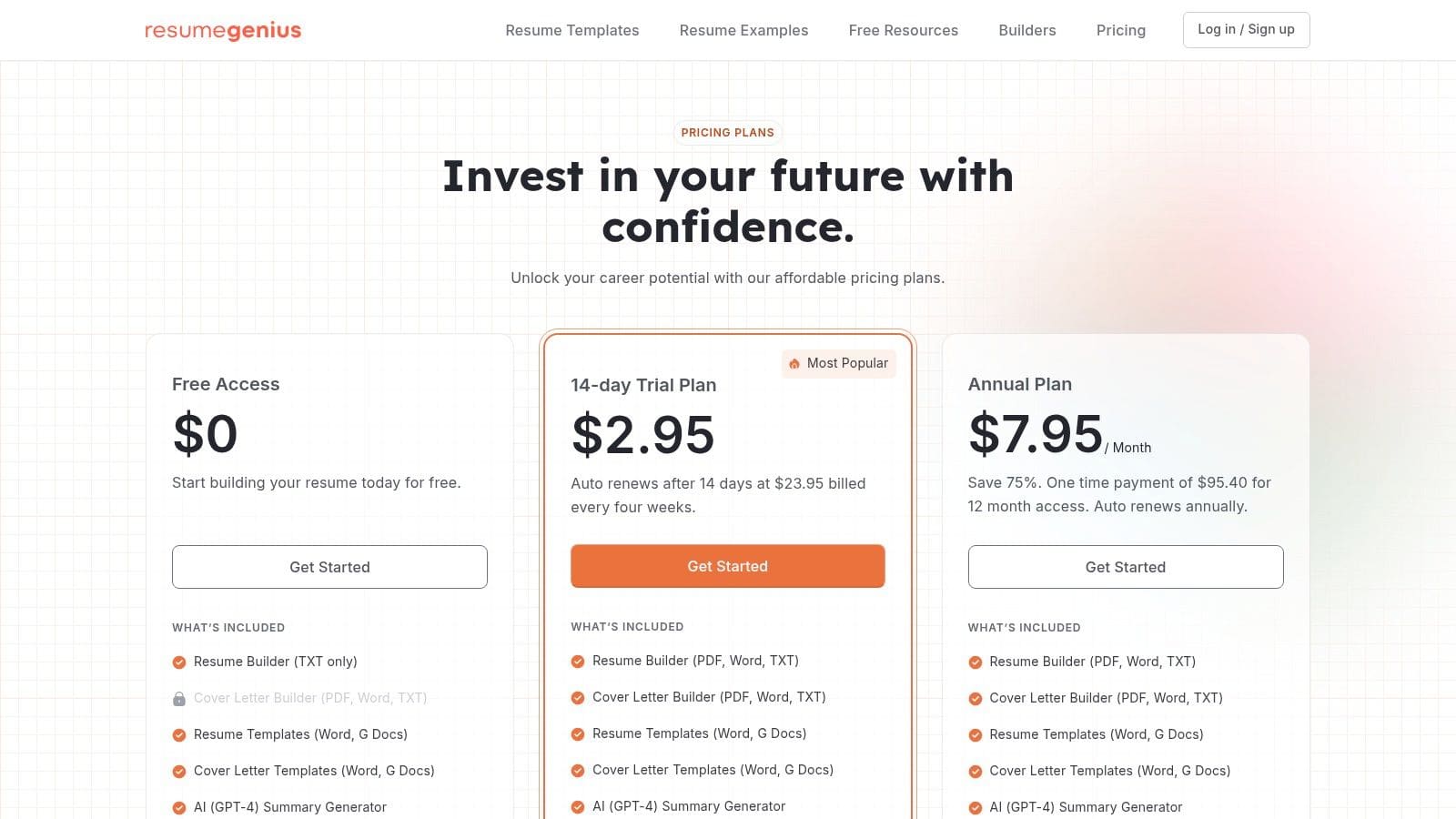 - Website: ResumeGenius Pricing