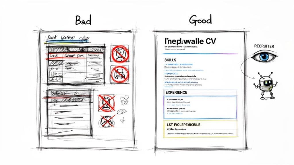 Before a hiring manager ever sees your CV, it's almost guaranteed to be scanned by an ATS. These systems aren't smart; they are parsers, built to pull out specific data. Anything that breaks from a standard, predictable structure can throw them off completely.