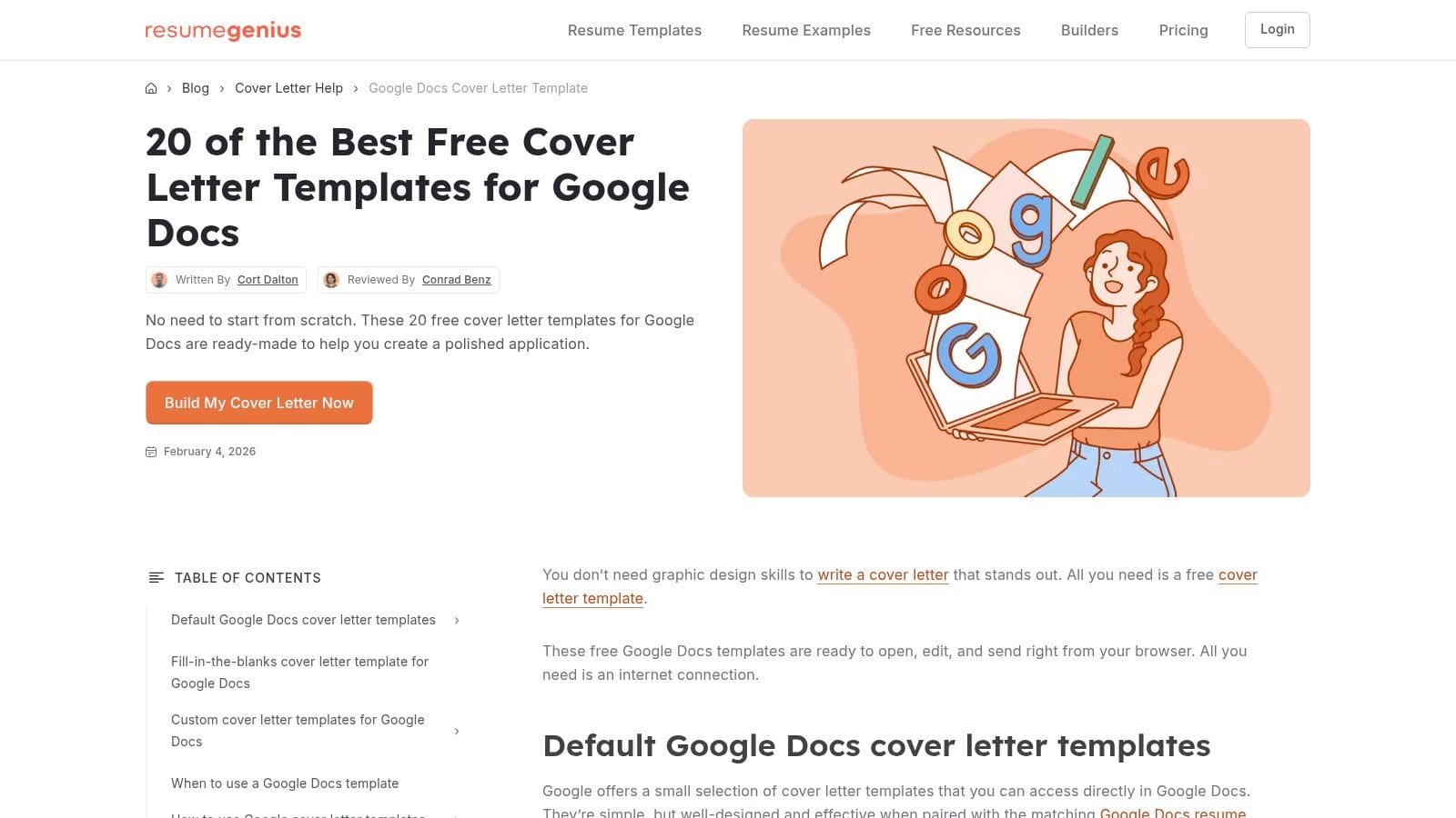 2. ResumeGenius – Google Docs Cover Letter Templates
