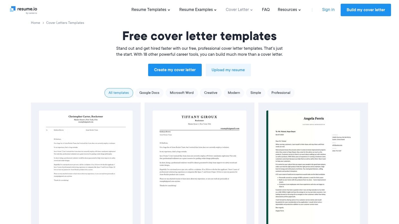 8. Resume.io – Google Docs Cover Letter Templates (via Builder)