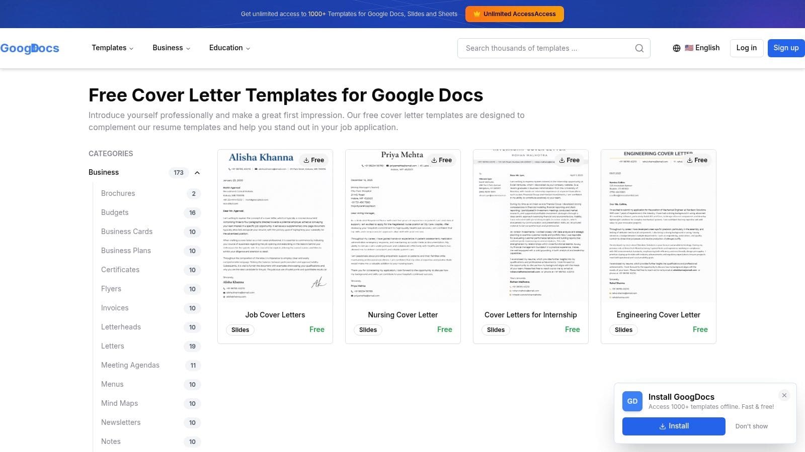 10. GoogDocs.com – Free Cover Letter Templates for Google Docs