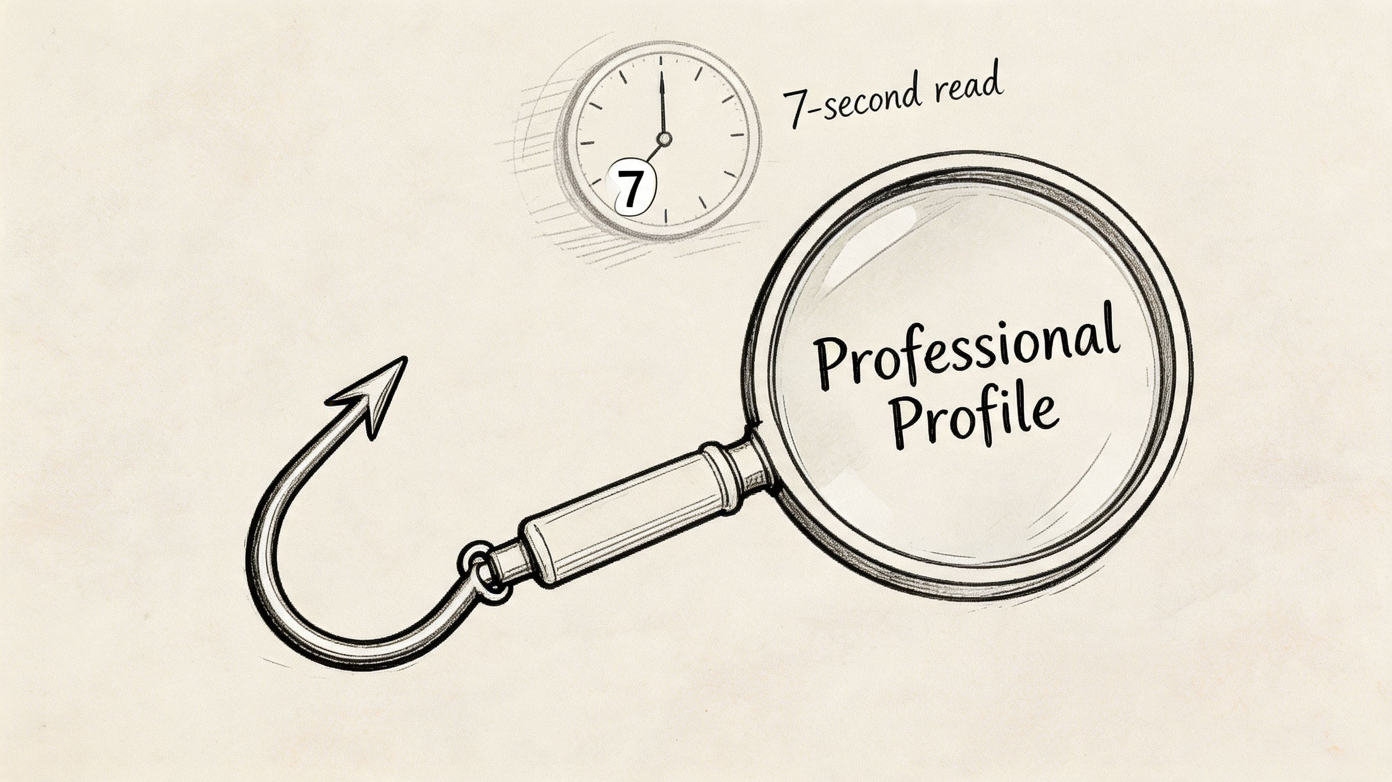 Your professional profile sits near the top of the page, which means it has one job. It must give the recruiter a reason to keep reading.
