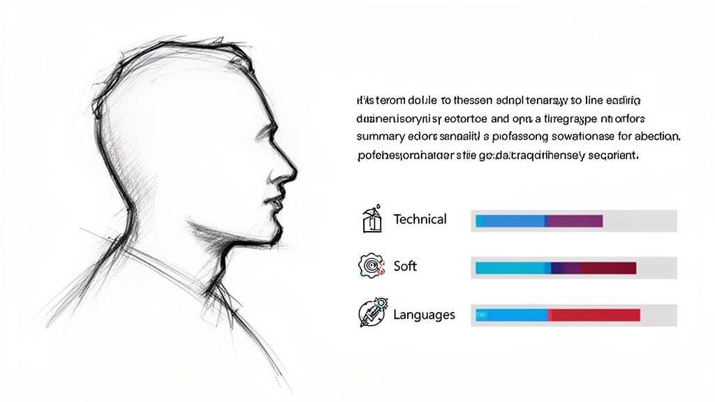 Right below it, the Skills section delivers the hard evidence. This part has become more than just a list; it's a vital keyword map for Applicant Tracking Systems (ATS) and a quick-scan cheat sheet for human reviewers.