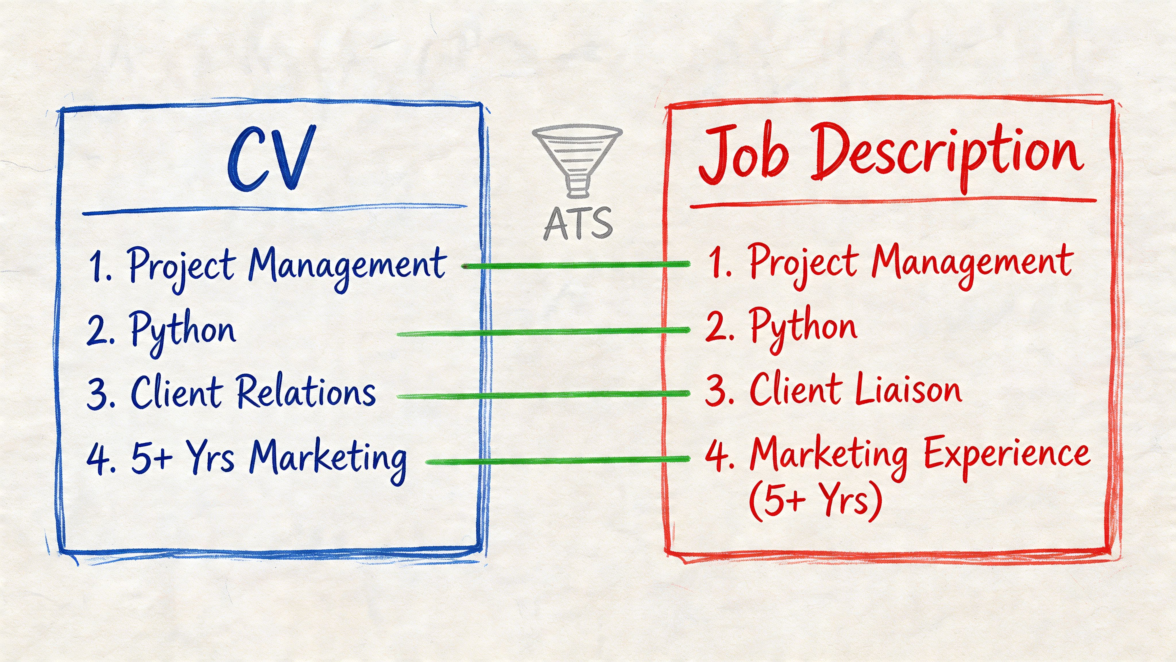 ATS screening is blunt. Recruiters are under time pressure too. If your CV uses different language from the job description, even when your experience fits, that fit can be missed. Matching your CV title to the target role can materially improve response rates, with one analysis reporting up to a 3.5x increase in interviews when the title alignment is accurate (how to tailor a resume to a job description).