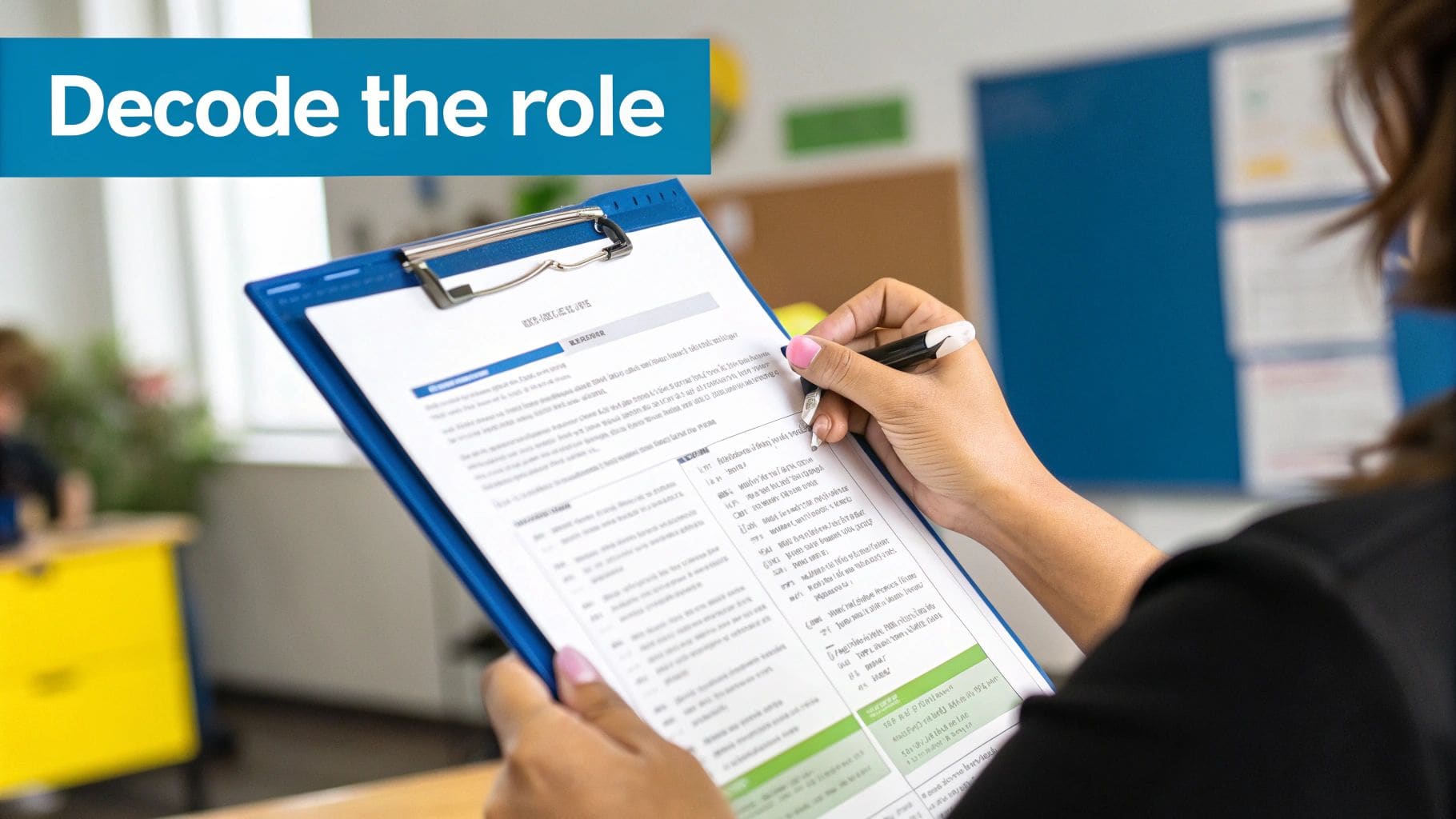 - Nice-to-Haves: Now, list the desirable skills. This might include familiarity with a particular phonics programme (like Read Write Inc.) or holding a valid first-aid certificate.